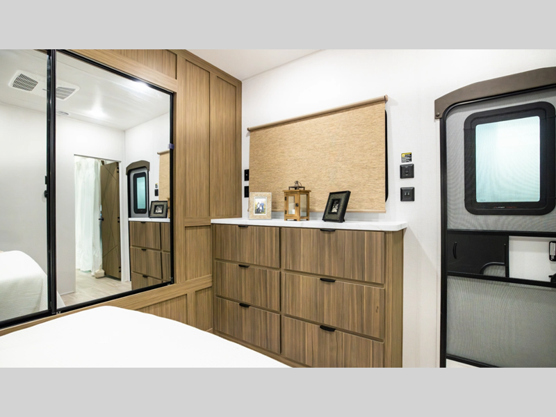 Sleeps 3 Slides 2 Length 37 ft 9 in Ext Width 8 ft Ext Height 12 ft 8 in Int Height 7 ft Hitch Weight 1335 lbs Dry Weight 9234 lbs Cargo Capacity 2301 lbs Fresh Water Capacity 40 gals Grey Water Capacity 40 gals Black Water Capacity 40 gals Available Beds King with Versa Tilt Cooktop Burners 3 Number of Awnings 1 Water Heater Type Tankless AC BTU 15000 btu Awning Info 21' with 4K Blade Lighting Axle Count 2 Shower Type Walk-In Shower Similar Floorplans