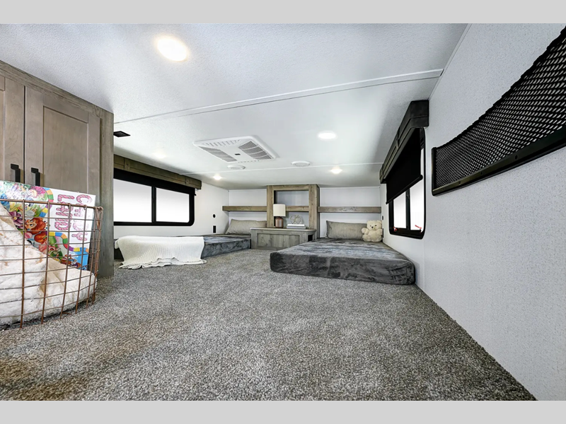 Sleeps 9 Slides 4 Length 42 ft 9 in Ext Width 8 ft Ext Height 11 ft 9 in Hitch Weight 1425 lbs GVWR 12654 lbs Dry Weight 10454 lbs Cargo Capacity 2200 lbs Fresh Water Capacity 43 gals Grey Water Capacity 70 gals Black Water Capacity 70 gals Number Of Bunks 3 Available Beds King Refrigerator Type Stainless Steel w/Ice Maker Refrigerator Size 18 cu ft Cooktop Burners 3 Shower Size 32" x 40" Number of Awnings 1 LP Tank Capacity 30 lbs Water Heater Capacity 12 gal Water Heater Type Gas/Electric DSI AC BTU 13500 btu Awning Info 21' Axle Count 2 Number of LP Tanks 2 Shower Type Shower w/Seat Electrical Service 50 amp Similar Floorplans