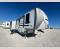 It won't be hard to find comfort in this spacious fifth wheel for four! Once you've unloaded the pass-thru storage, you can head inside to make lunch in the full kitchen. There is a 16-cu. ft. 12V refrigerator here to keep food fresh, and everyone can dine at the kitchen island with four chairs. The theater seating is directly across from the 50" TV and fireplace, and you'll appreciate the hidden storage behind the TV for movies, games, and books! A desk with a chair is also found in the combined kitchen and living area if you need to get some work done, and a rear tri-fold sofa provides sleeping space for guests. Don't overlook the spacious full bath with dual sinks and the front private bedroom with a custom king bed slide. A front wardrobe plus a dresser will let you keep your space tidy, and there is washer/dryer prep if you plan to add those appliances!