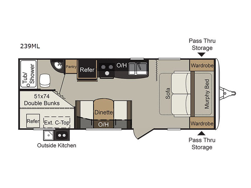 Let this Passport Express travel trailer by Keystone take you and your family on many adventures. Model 239ML features a set of double bed bunks, a rear bath layout, and a Murphy bed!